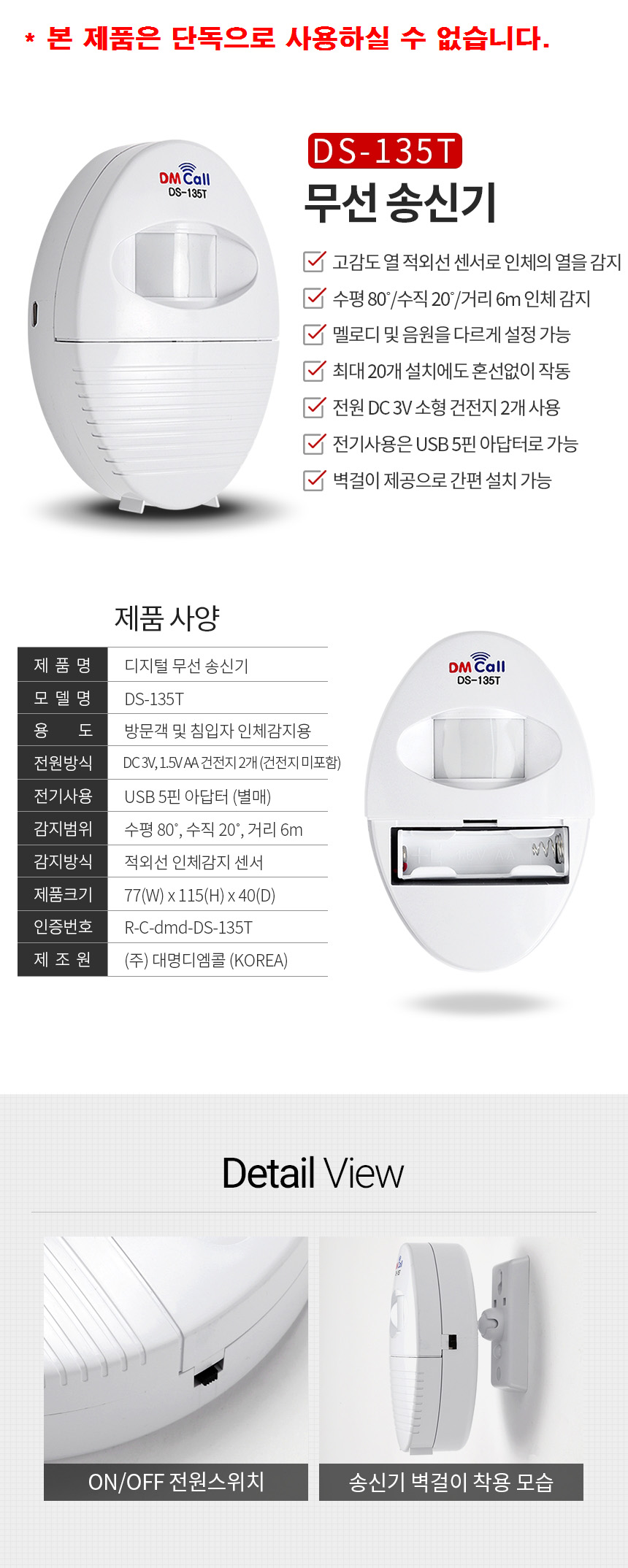 ¹«¼±Â÷ÀÓ¼¾¼­ DS-135RT ¿É¼Ç-¼ö½Å±â¸¸ Ãß°¡½Ã ±¸¸Å
