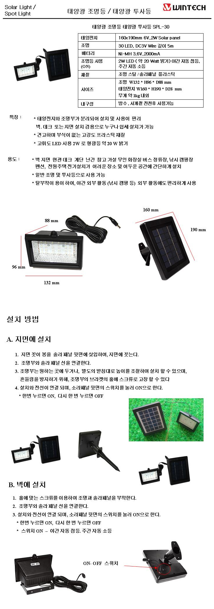 ÅÂ¾ç±¤ÃæÀü Á¶¸íµî ¾ß°£ÀÚµ¿Á¡µî 30 LED