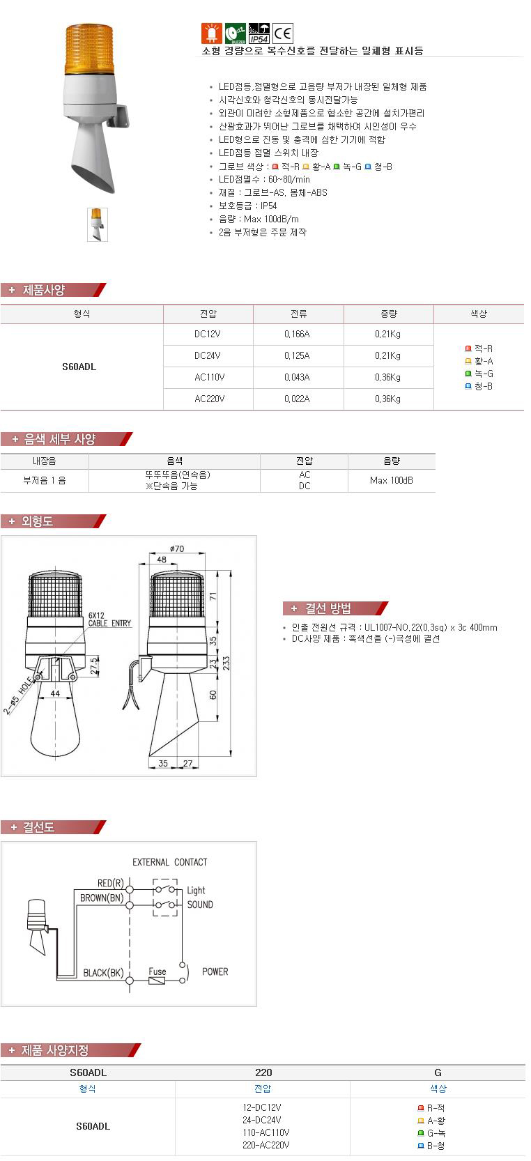 LENS ¥õ60mm-Max. 105dB ½ÅÈ£À½ ³»Àå LED Á¡µî/Á¡¸êÇü Ç¥½Ãµî