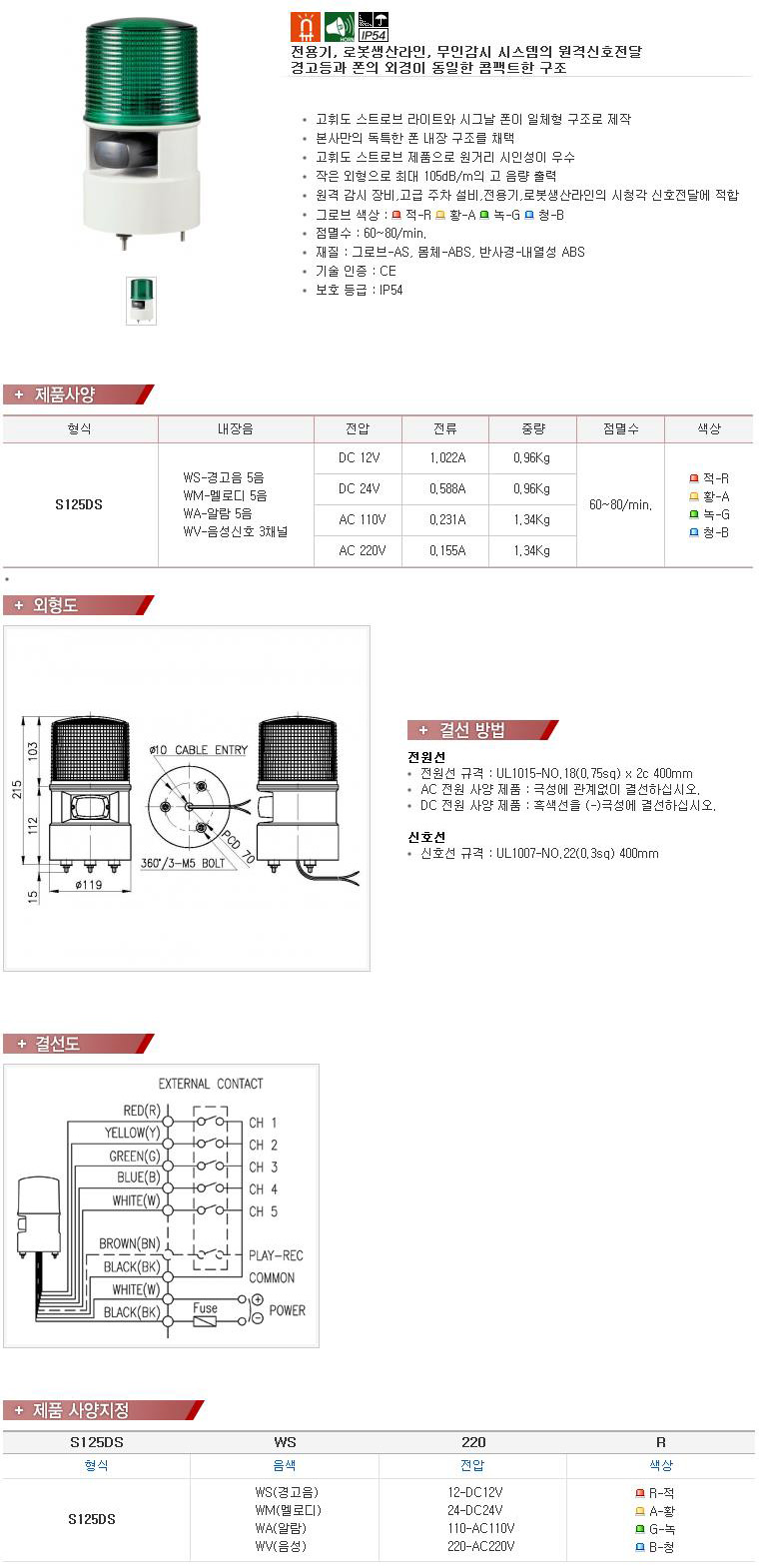 LENS ¥õ125mm-Max. 105dB ½ÅÈ£À½ ³»Àå LED Á¡µî/Á¡¸ê Ç¥½Ãµî