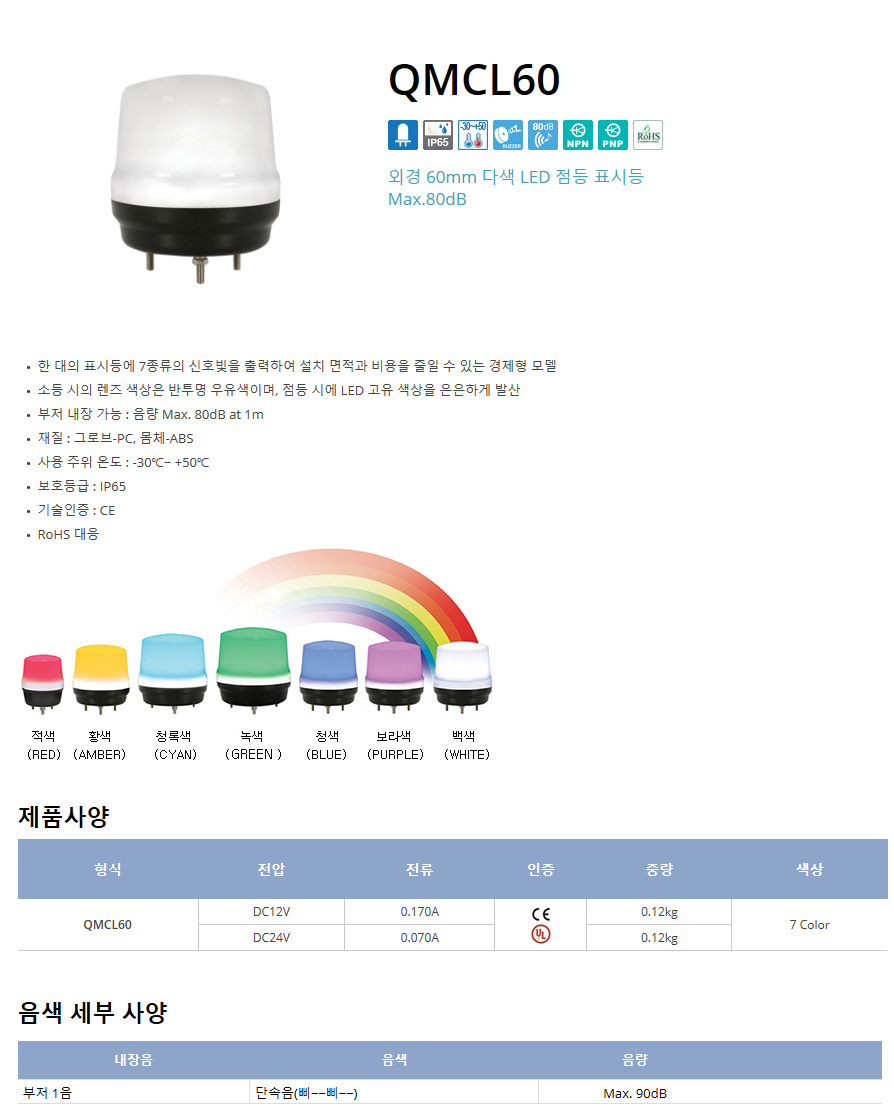 ¿Ü°æ 60mm ´Ù»ö LED Á¡µî Ç¥½Ãµî Max.80dB