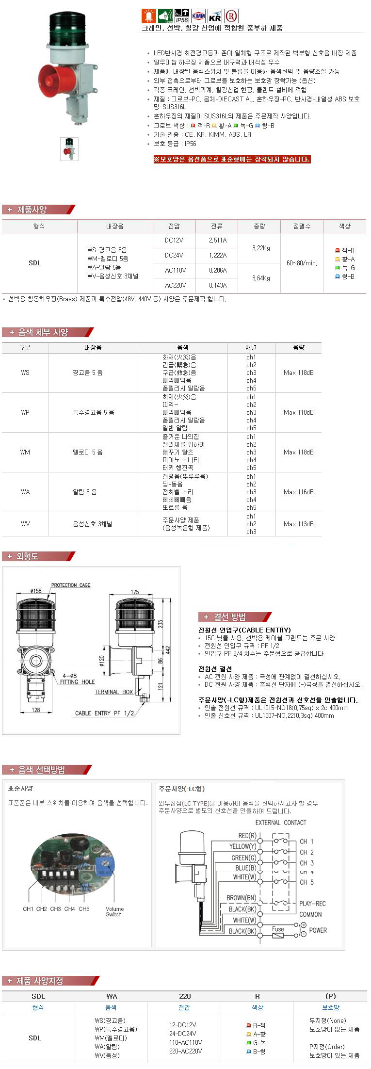¥õ150mm, PHONE 113-118dB ½ÅÈ£À½ ³»Àå ¼±¹Ú, ÁߺÎÇÏ¿ë LED Á¡µî/Á¡¸ê Ç¥½Ãµî