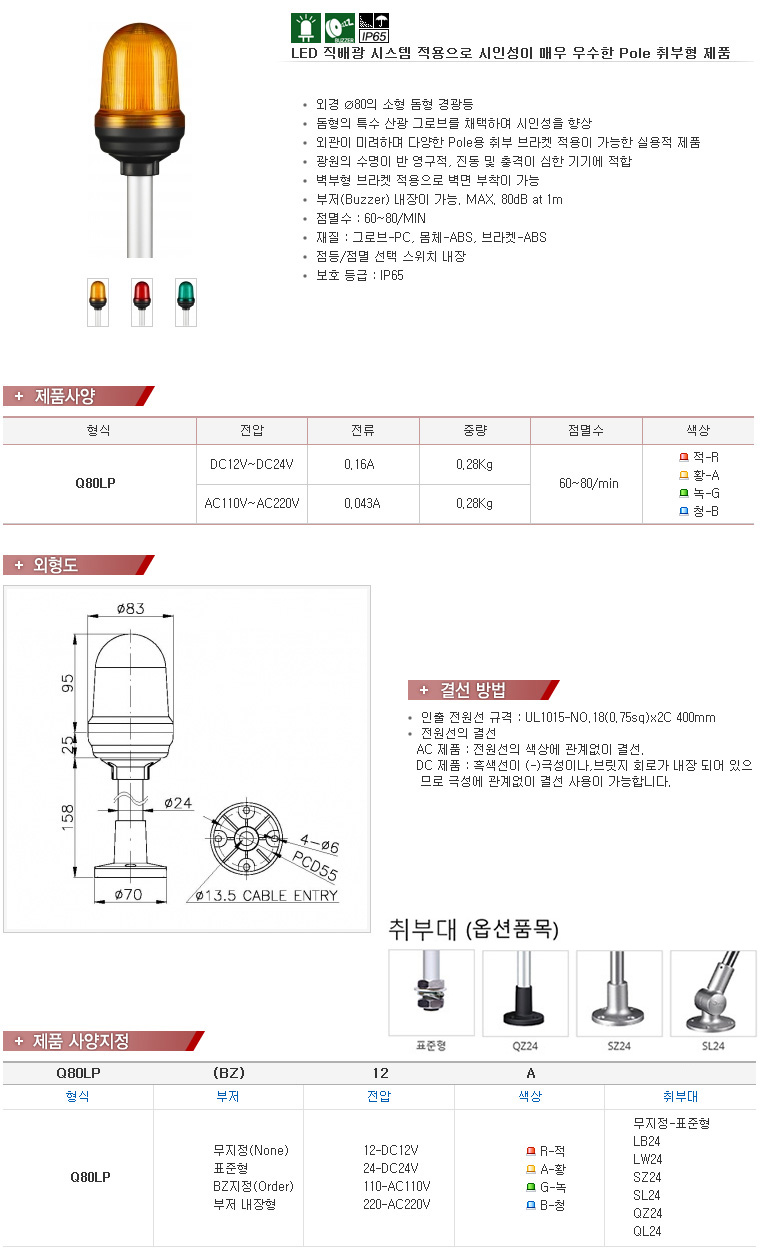 µ¼Çü °æ°íµî/Ç¥½Ãµî ¨ª80mm Max.80dB