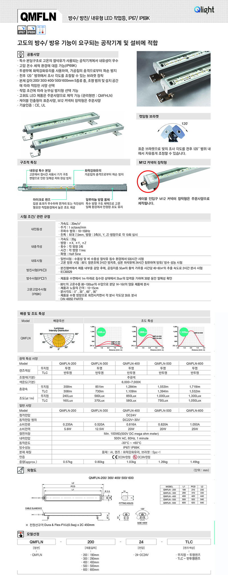 ¹æ¼ö/¹æÁø/³»À¯Çü LED ÀÛ¾÷µî, IP67/ IP69K 38(W)X64(H)X190~600(L)