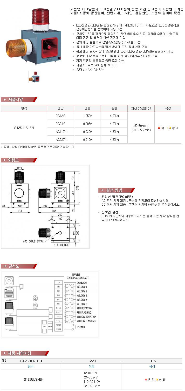 ¨ª125mm Max.108dB ½ÅÈ£À½ ³»Àå ¹Ú½ºÀÏüÇü LEDÇ¥½Ãµî