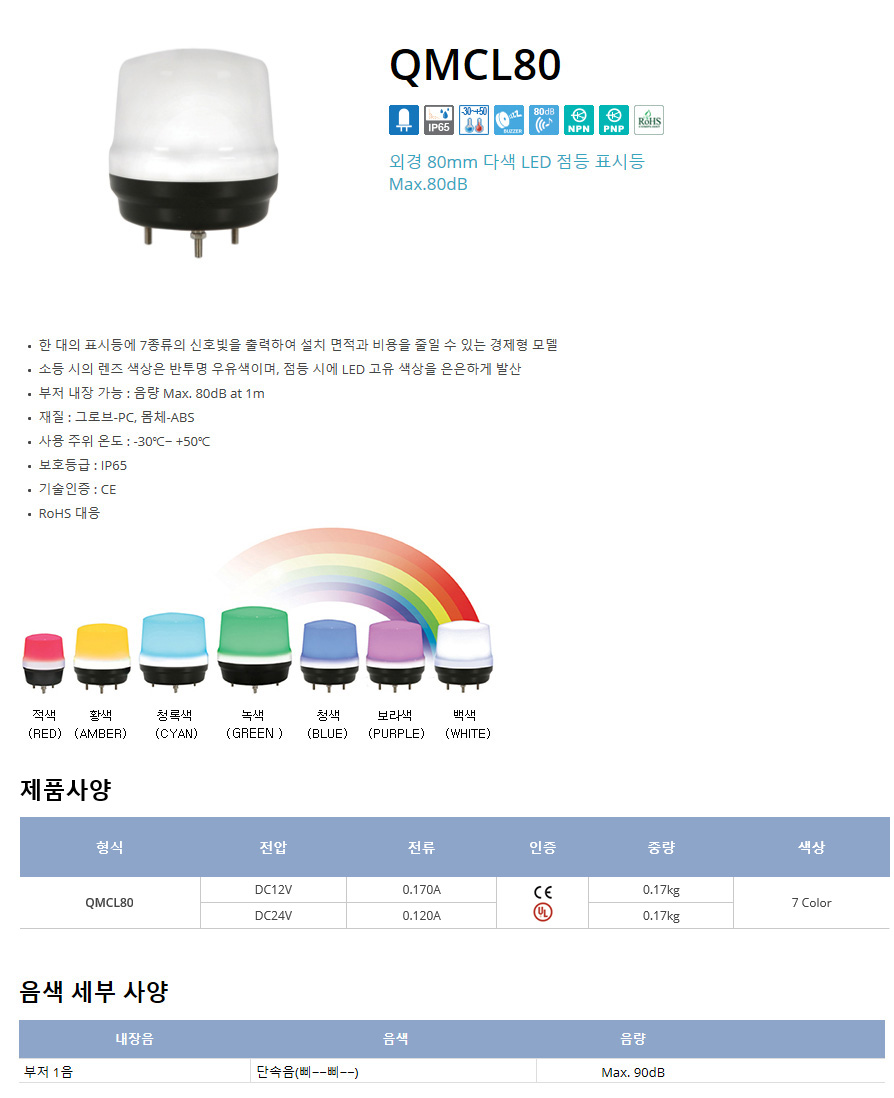 ¿Ü°æ 80mm ´Ù»ö LED Á¡µî Ç¥½Ãµî Max.80dB